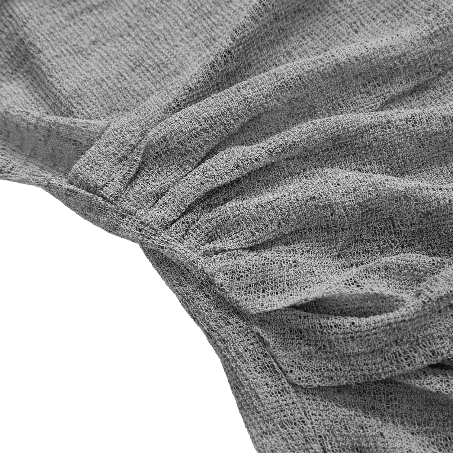 Crafted from sheer knit fabric that is soft yet sufficiently thick, it offers a lightweight, breathable feel and flows gracefully with movement—keeping the wearer comfortable while effortlessly standing out.