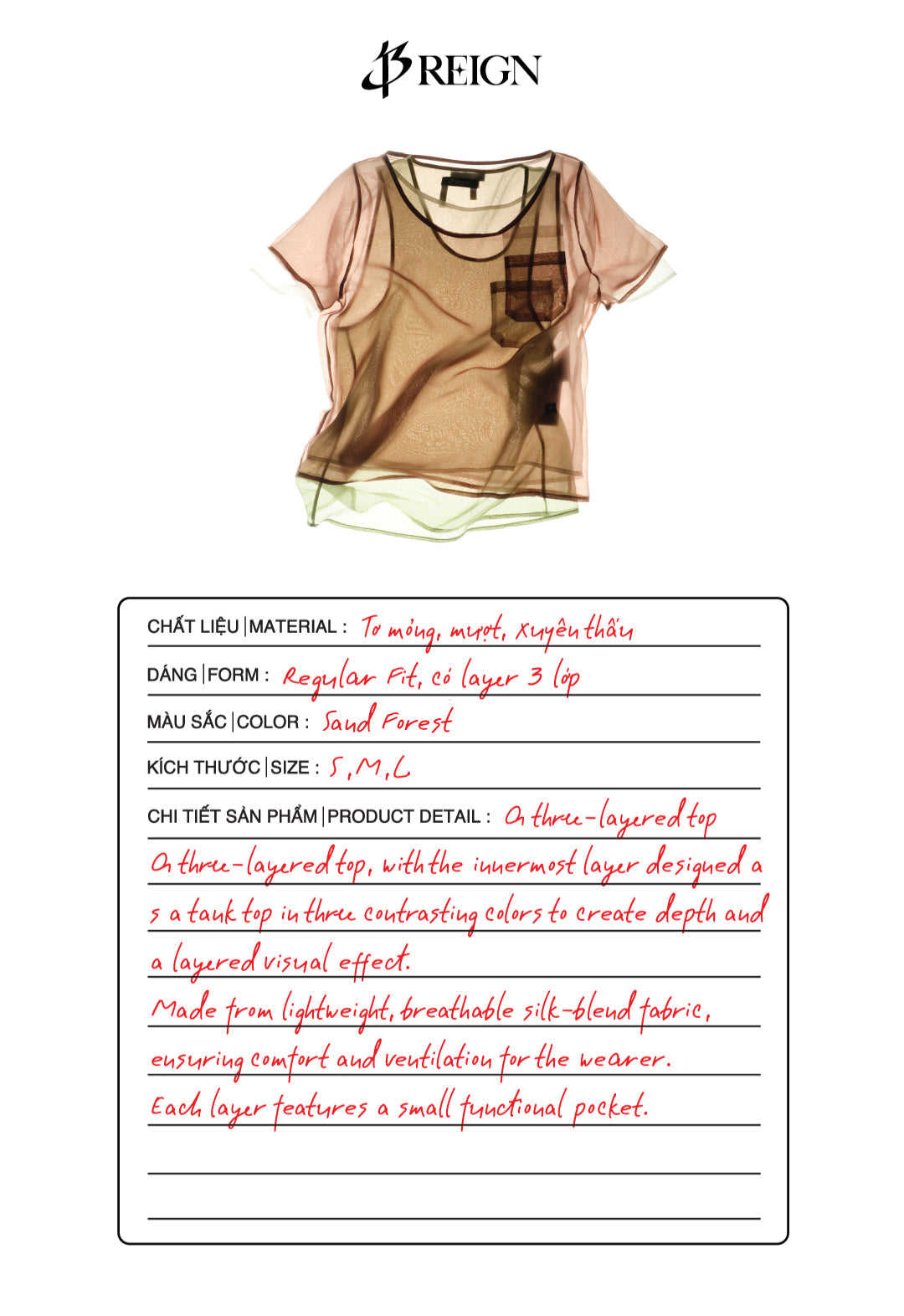13Reign 3 Layers Tee - 2 Color - This 3-layer tee features an inner tank top with a tri-color design for depth, crafted from lightweight silk fabric to ensure breathability and comfort. Each layer includes a small pocket. Perfect for men and women, ideal for everyday wear or casual outings. Made in Vietnam, ensuring high quality and durability.