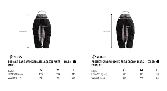 13Reign Hidden Camo Wrinkled Shell Cocoon Pants - These pants feature side seam construction with a double-layered front for added comfort and breathability, designed with a unique inner layer. Perfect for men and women, they’re ideal for everyday wear or casual outings. The standout graphic and camo design adds a modern touch. Made in Vietnam, ensuring high quality and durability, they include a 7 cm wide elastic waistband with adjustable drawstrings.