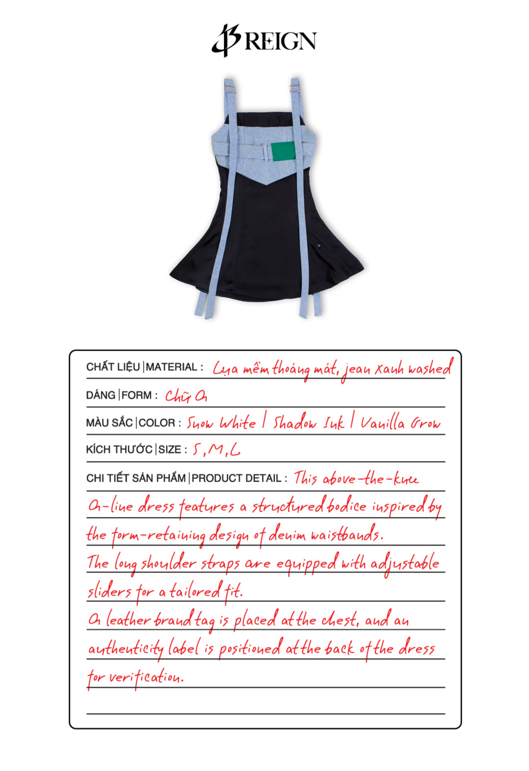 13Reign Jeans Line Dress - This A-line dress above the knee features a soft, breathable silk upper body and a denim hem design, perfect for women, ideal for everyday wear or casual outings. Its standout detail sky wash design offers a comfortable and modern feel. Made in Vietnam, ensuring high quality and durability. Adjustable straps suit various heights and back fits.