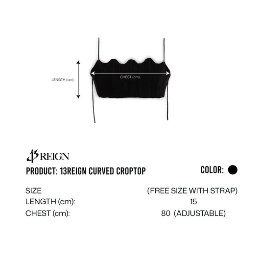 13Reign Curved Croptop -Black Ink – This fitted top is designed with curved details inspired by roof tiles, creating a distinctive and eye-catching feature.